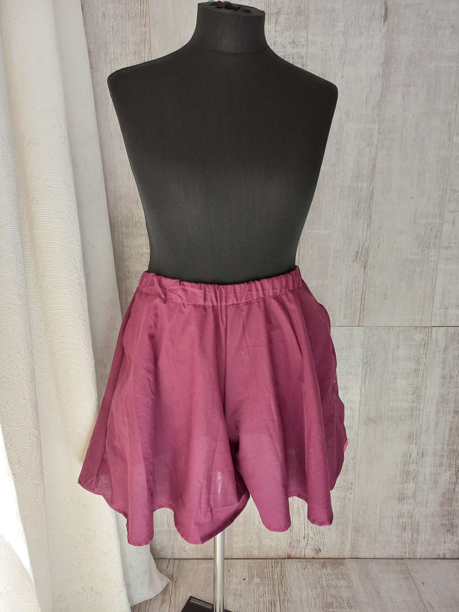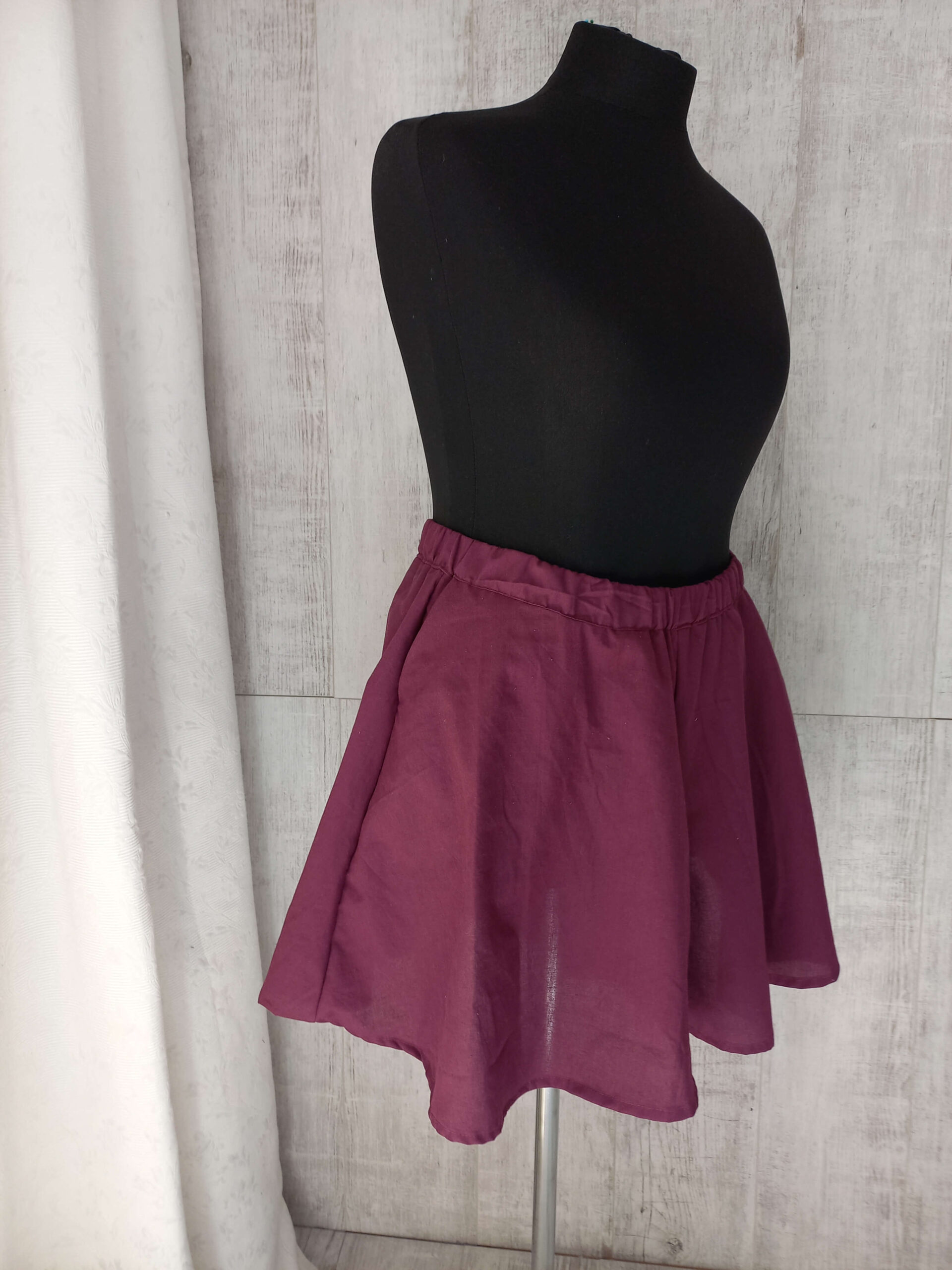 Bordó szoknya-nadrág. Gumis deréka 94-120cm között nyúlik. Oldalt zsebek.